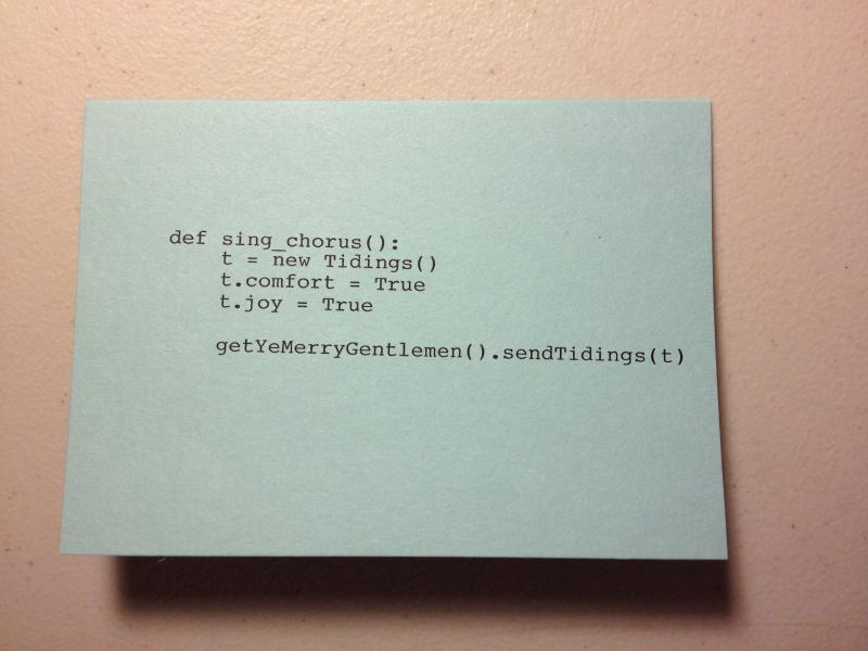 Come up with clever, geeky Christmas cards.The Solution: CodeCards
