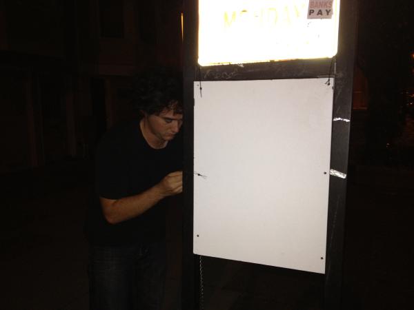 Our urban world is awash in letters and words. Building marquees, advertisements, municipal signs, and countless other sources of text make up the fabric of everyday living. Aside from the occasional lost cat flyer, why can’t each of us contribute to this ‘discussion’, as it were? Why must outside environments be read-only?